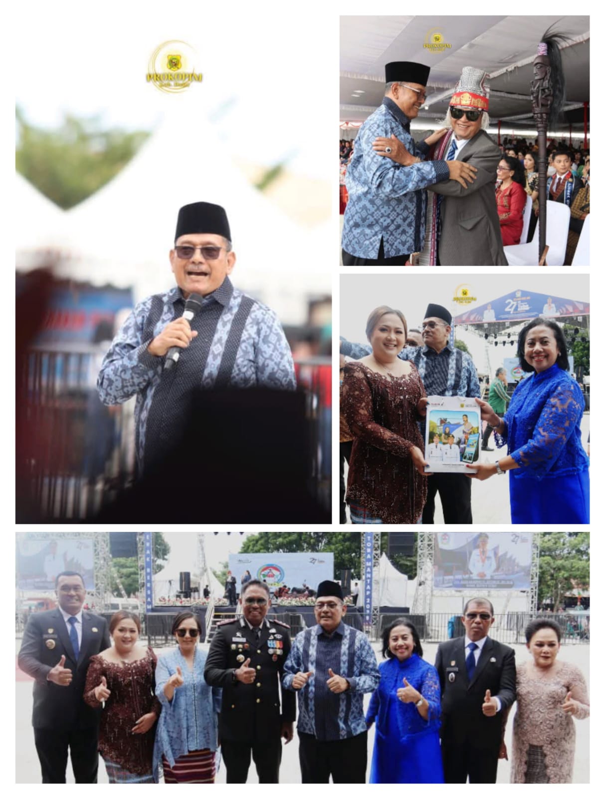 Perayaan Hari Jadi Kabupaten Toba Berlangsung Meriah dan dihadiri oleh Unsur Forkopimda, Para Kepala Daerah dari Berbagai Kabupaten/Kota Se-Provinsi Sumatera Utara, Tokoh Masyarakat, serta Masyarakat yang Turut Memeriahkan Peringatan Hari Jadi yang Ke-27 Tahun Kabupaten Toba. (Junitha)