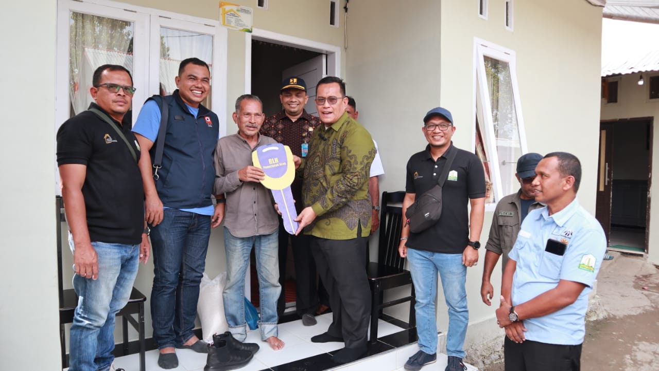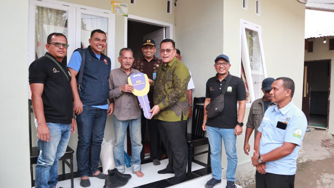 Acara serah terima berlangsung hari ini dengan simbolisasi kunci dua rumah kepada Ibu Mariamah dan Fakiyah sebagai penerima manfaat. Dalam sambutannya, Pj Bupati Ahmad Dadek menyampaikan harapannya agar para penghuni rumah dapat memelihara dan merawat rumah dengan sebaik-baiknya.