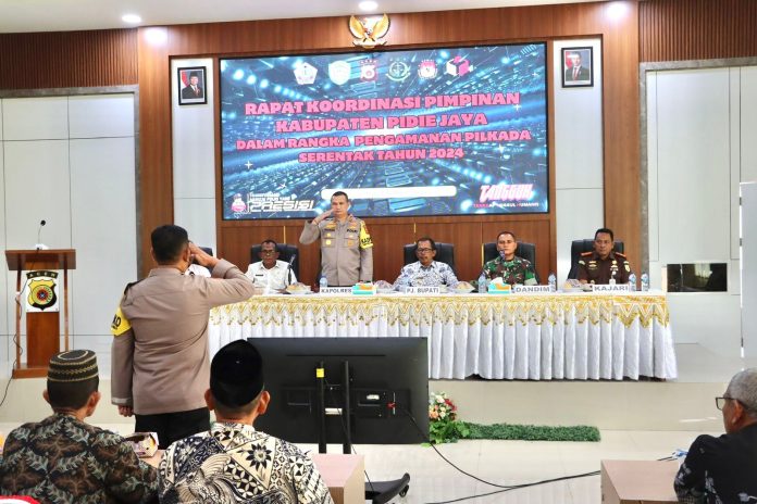 Dalam pembukaan Rakor, Pj. Bupati Pidie Jaya menegaskan pentingnya menjaga netralitas Forkopimda sebagai kunci keberhasilan Pilkada.