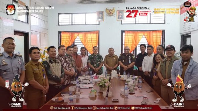 GLOBALNEWS21.ID, Dairi – Menjelang hari Pemungutan Suara Pilkada Serentak, 27 November 2024, KPU Dairi menggelar mini lokakarya dengan mengundang Forkopimda dan pihak terkait, seperti Bawaslu Dukcapil, Kesbangpol dan Kominfo, di ruang rapat KPU Dairi. Senin, (25/11/2024) Sore di Jalan Pandu, Kecamatan Sidikalang, Kabupaten Dairi, Sumatera Utara, Indonesia.