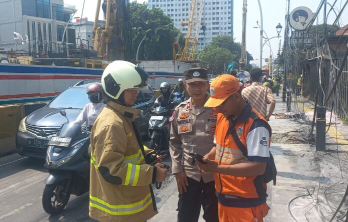 Meneruskan pesan Kapolres Metro Jakarta Pusat Kombes Pol Susatyo Purnomo Condro melalui Kapolsek Metro Menteng Kompol Bayu Marfiando utamakan pejalan kaki dan pengendara agar kabel yang menganggu segera teratasi Koordinasi dengan pihak PLN.