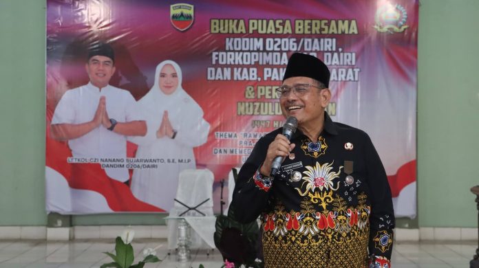 Sementara itu Komandan Kodim 0206/Dairi , Letkol CZi, Nanang Sujarwanto juga menyampaikan rasa Terimakasih atas Kehadiran Bupati Dairi dan Para Undangan. Ia menegaskan bahwa kegiatan Buka Puasa bersama ini tidak hanya sebagai bentuk Ibadah, tetapi juga sebagai sarana Mempererat Hubungan antara TNI, Pemerintah Daerah dan Masyarakat.