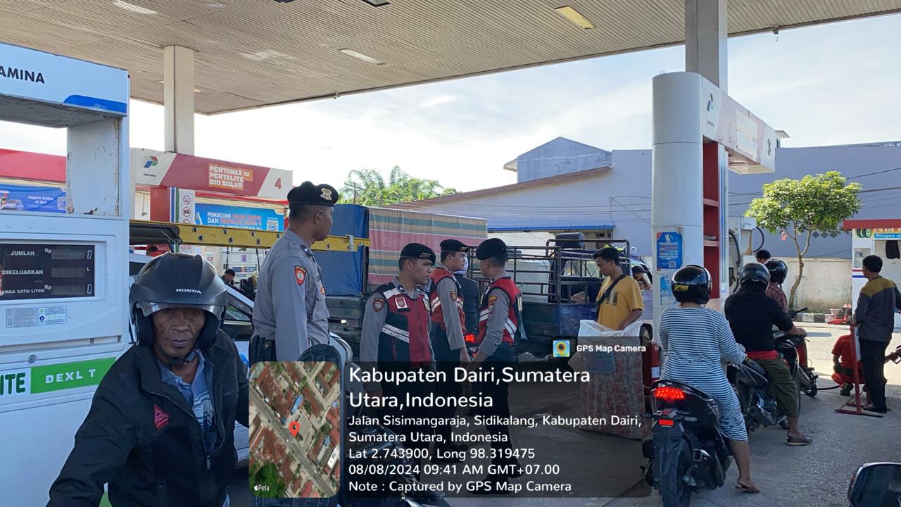 Tak hanya itu, Petugas juga melakukan pengecekan di salah satu SPBU yang tampak ramai pengendara untuk membeli BBM, sehingga masyarakat yang sedang mengantri merasa aman dan nyaman.