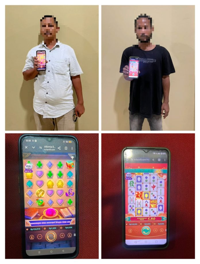 Kedua pelaku, TF (36) dan AH (24), warga Kecamatan Meurah Dua, ditangkap saat asyik bermain judi online melalui situs yang diduga sebagai permainan slot.